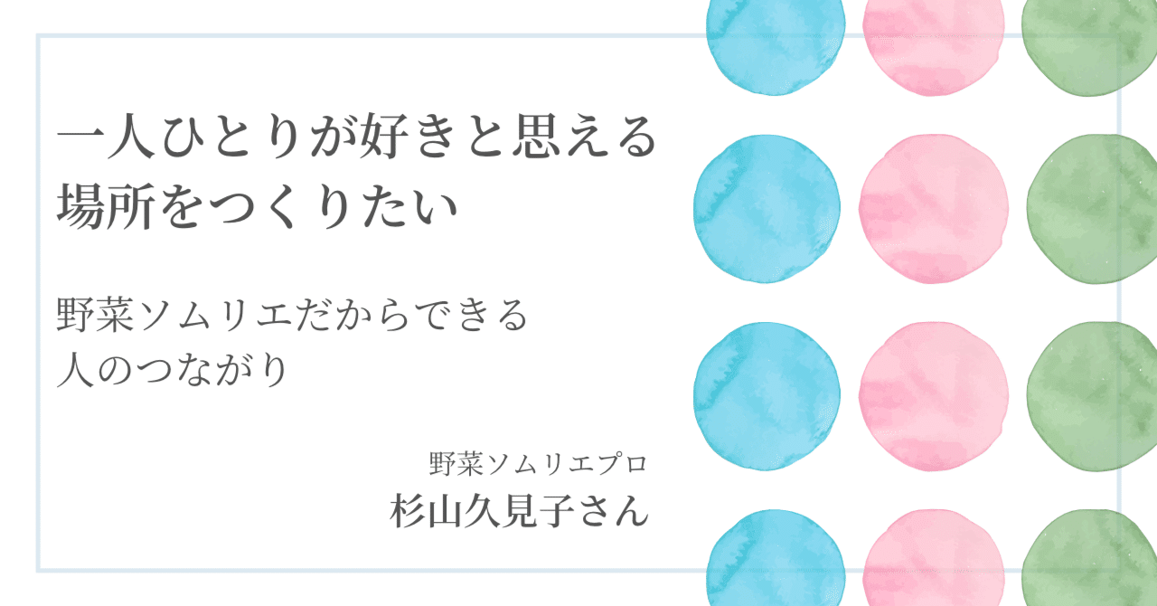 「一人ひとりが好きと思える場所をつくりたい」野菜ソムリエだからできる人のつながり〜杉山久見子さん〜|野菜ソムリエコミュニティTOKYO|インターナショナル部